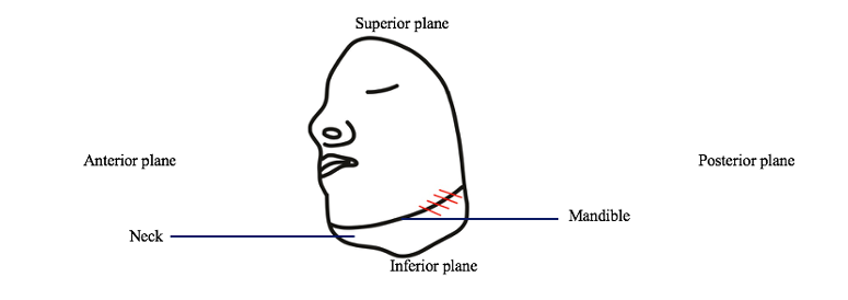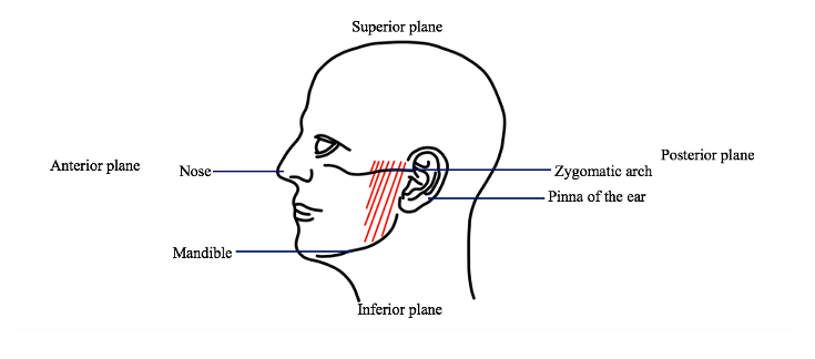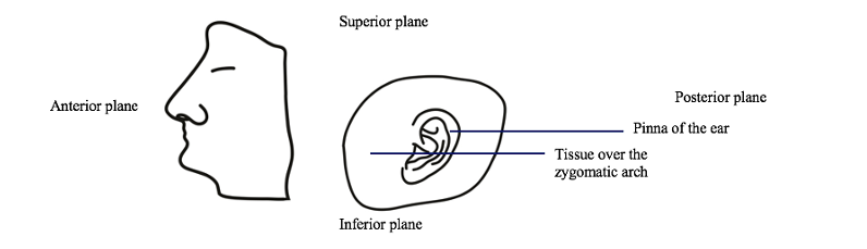1. Specimen Preparation: Cadavers are being treated and embalmed according to protocol in the Advanced Technical Skills Simulation Laboratory (ATSSL). The cadavers will be lightly embalmed and will have been received by the ATSSL within the same week as our dissections will occur. There are two kinds of embalming that are conducted for pathological specimens: hard, and light embalming. Hard embalming is used to preserve the specimens long-term, and results in a specimen with low joint flexibility. Light embalming is used to preserve the specimens for a shorter period of time and leaves them with soft internal organs and highly flexible joints. Both embalming methods utilize formaldehyde, glutaraldehyde, methanol, humectants, wetting agents, and other solvents. The biggest difference in materials between the methods is the concentration of formaldehyde that is used. Hard embalming uses 37-40% formaldehyde, whereas soft embalming uses 5-35% formaldehyde. We have chosen to use light embalming because the flexibility makes our dissection process easier and because the lower concentration of formaldehyde will interact less with the internal structures, leaving them histologically more similar to how they were prior to embalming, resulting in more accurate analysis. Cadaveric specimens will be received by the study team as heads that have already been cut along the midsagittal plane. The area of tissue over the temporal bone and zygomatic arch including the pinna of the ear will be received as a separate piece. The skulls and brains will be removed from the specimens. All work will be conducted within the ATSSL and all dissections will be completed bilaterally. Refer to Figure 2 for an image of how specimens will be received.