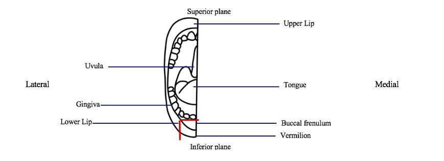 1.3 Labial gland dissection: A 3cm x 3cm section of the lower lip from the blade cut along the vermilion and buccal frenulum, along the gingiva and up the lateral edge of the lip will be excised using scissors.