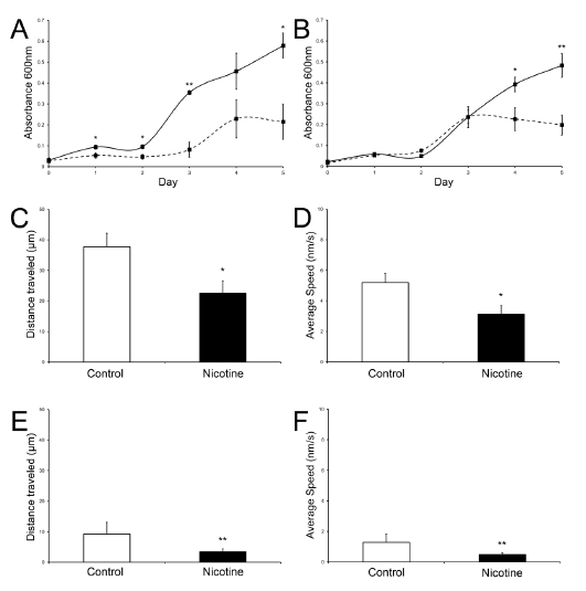 We have recently shown (See Press and Media) that nicotine is capable of significantly affecting stem cell function. Nicotine reduces a stem cell's ability to proliferate (Figure 1), migrate (Figure 2), and differentiate (Figure 3) into bone.