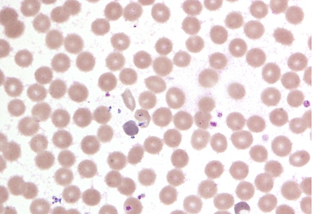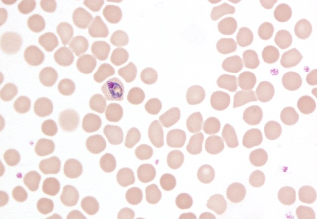 Babesia microti on thin blood smear examination (SWCCD, 2013)