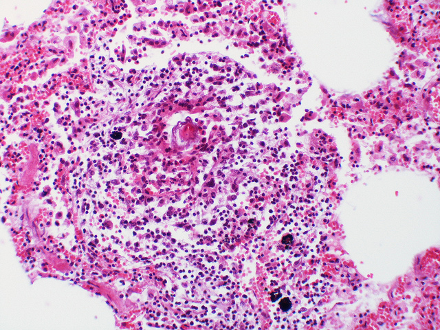 Granuloma surrounding a Schistosoma egg (Flickr user Yale Rosen)