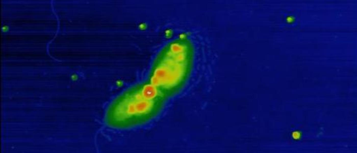 Atomic force microscopy image of Shewanella loihica PV4 cell with silver nanoparticles.