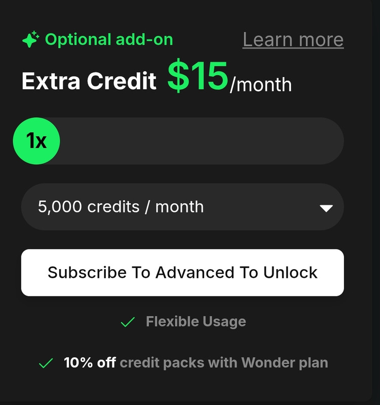 Extra Credits Add-On: 5,000 credits for $15 / month.