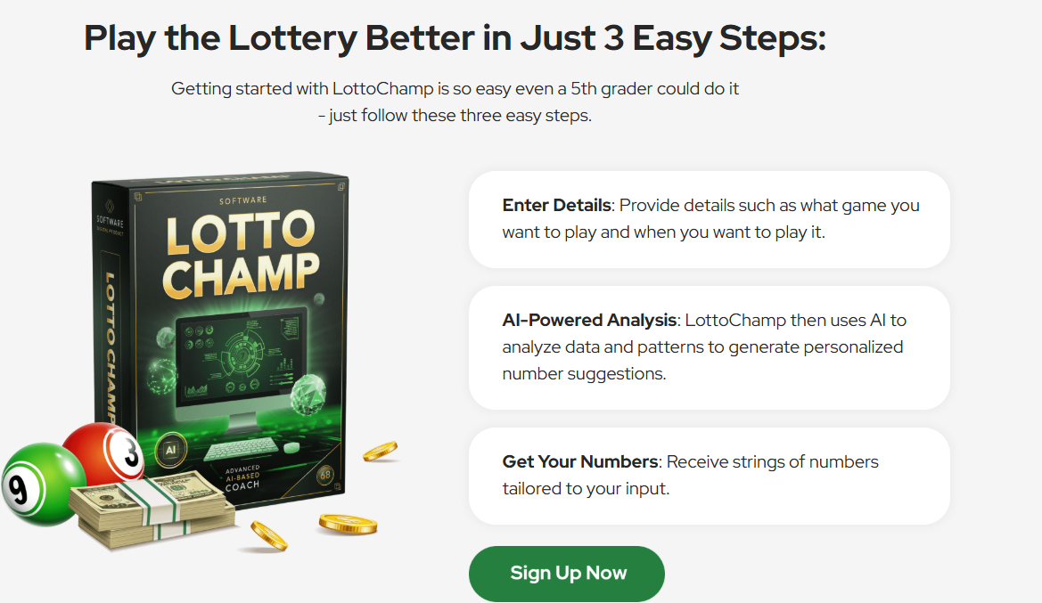 Lotto Champ is an online software tool that says it uses AI and machine learning to analyze historical lottery data and suggest number combinations that have higher probability potential.