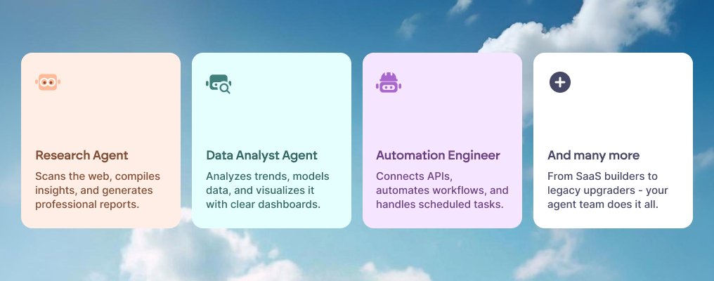 Emergent runs on a multi-agent orchestration system, where each task is delegated to a specialized AI agent: