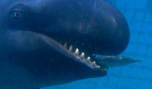 False killer whales are being by-caught by tuna fishing boats. They sometimes get injured on the baited hooks underwater . Our initial work shows that false killer whales can 'see' the hooks underwater with their biosonar. We want to find out how far away they can detect the hooks, whether some hooks are 'brighter' than others, whether we can make them brighter, whether the whales can detect bright hooks better and whether we can work with fishers to greatly reduce the deaths of whales.