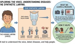 Our voice carries our health condition long before symptoms appear. I will build a soft-robotic larynx that mimics voice. A high-speed camera, sensors, and motorized stages will control and measure the model, which will reproduce healthy and diseased phonation. Data will clarify how tissue motion creates sound and support early-warning biomarkers, e.g., for Parkinson’s. I hypothesize that the soft-robotic larynx will predict vocal qualities and early pathology which are not measurable in humans.